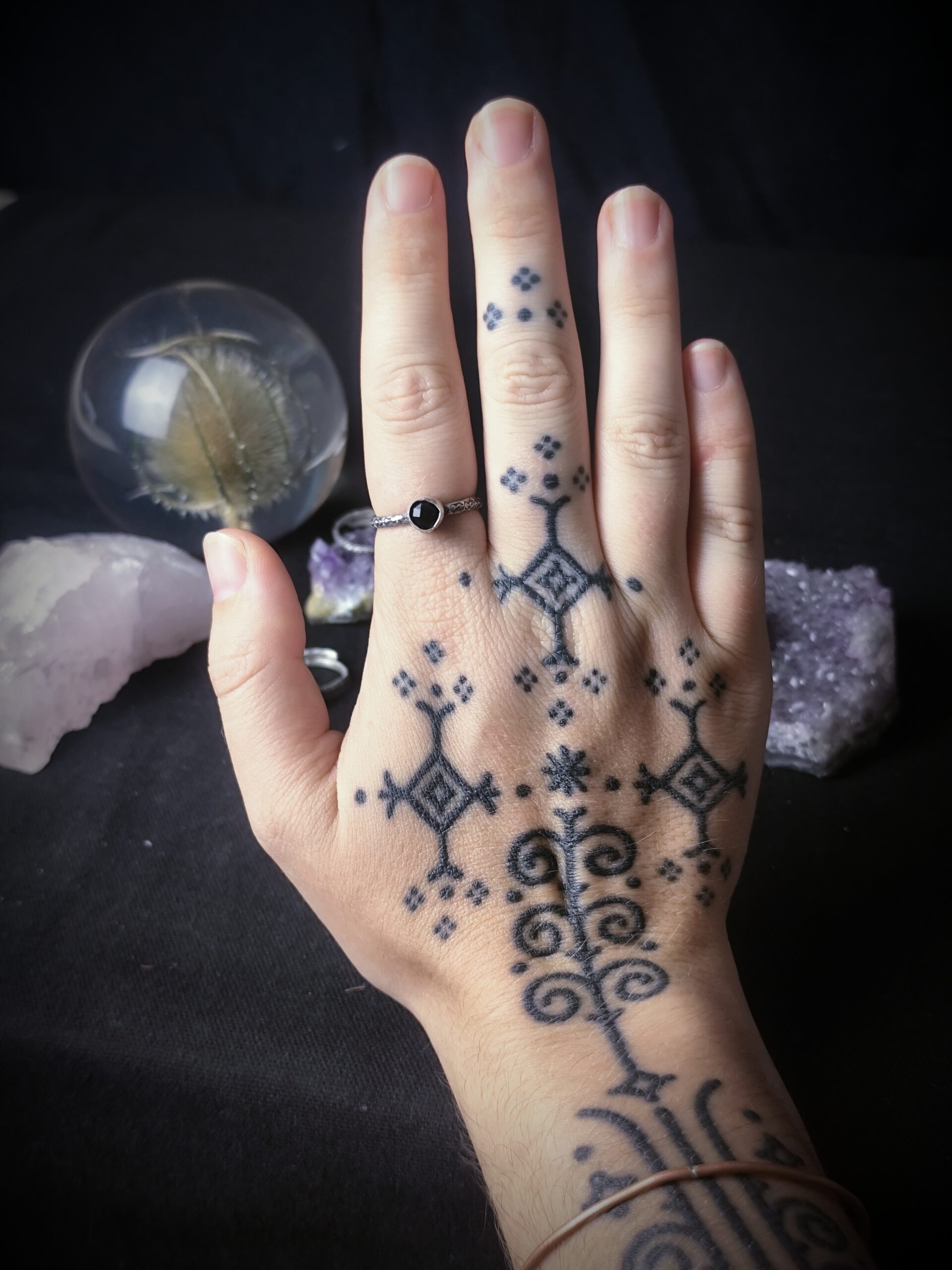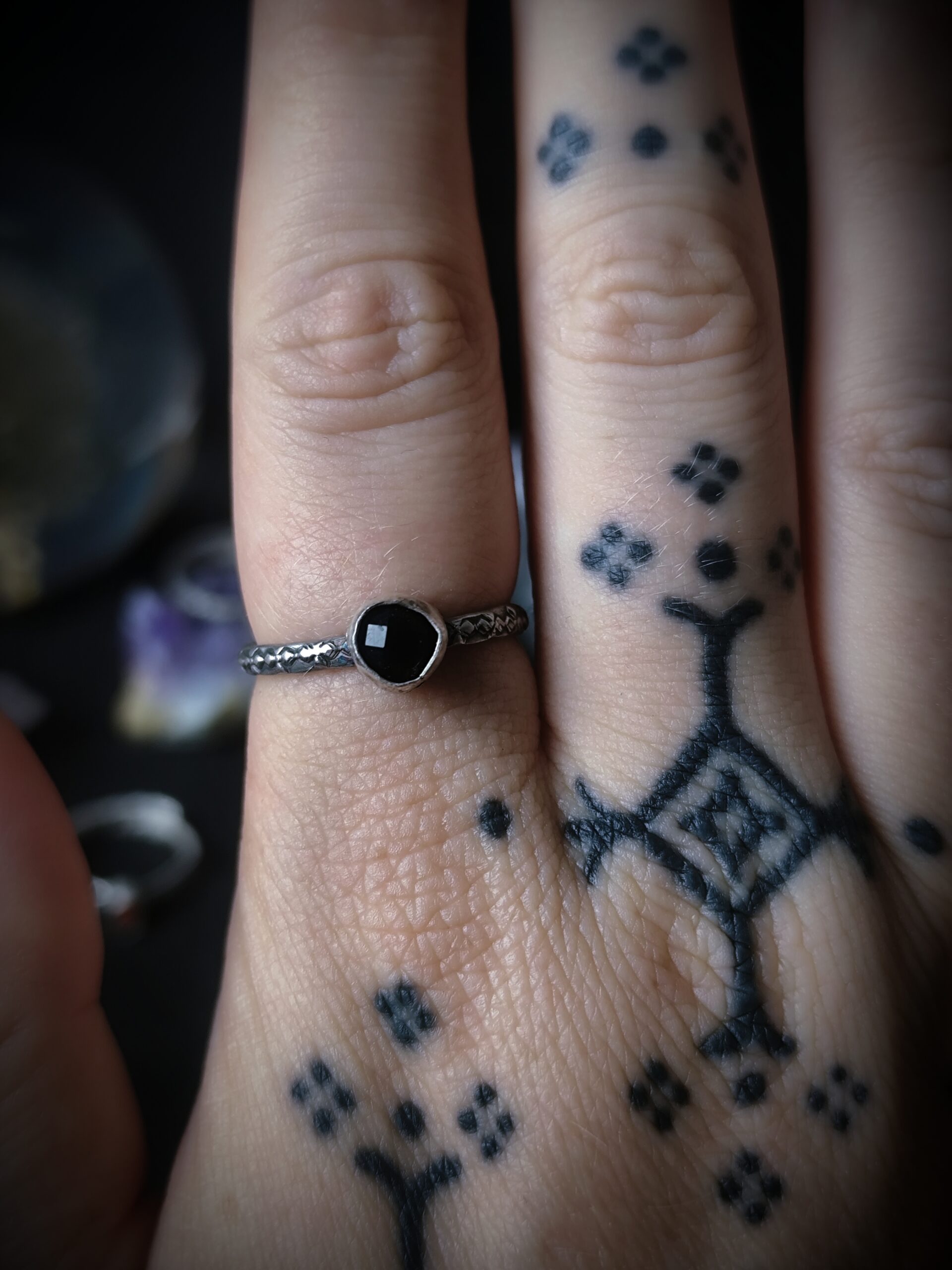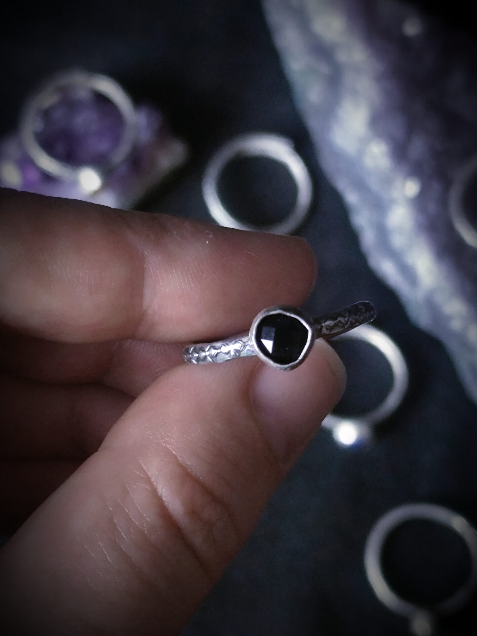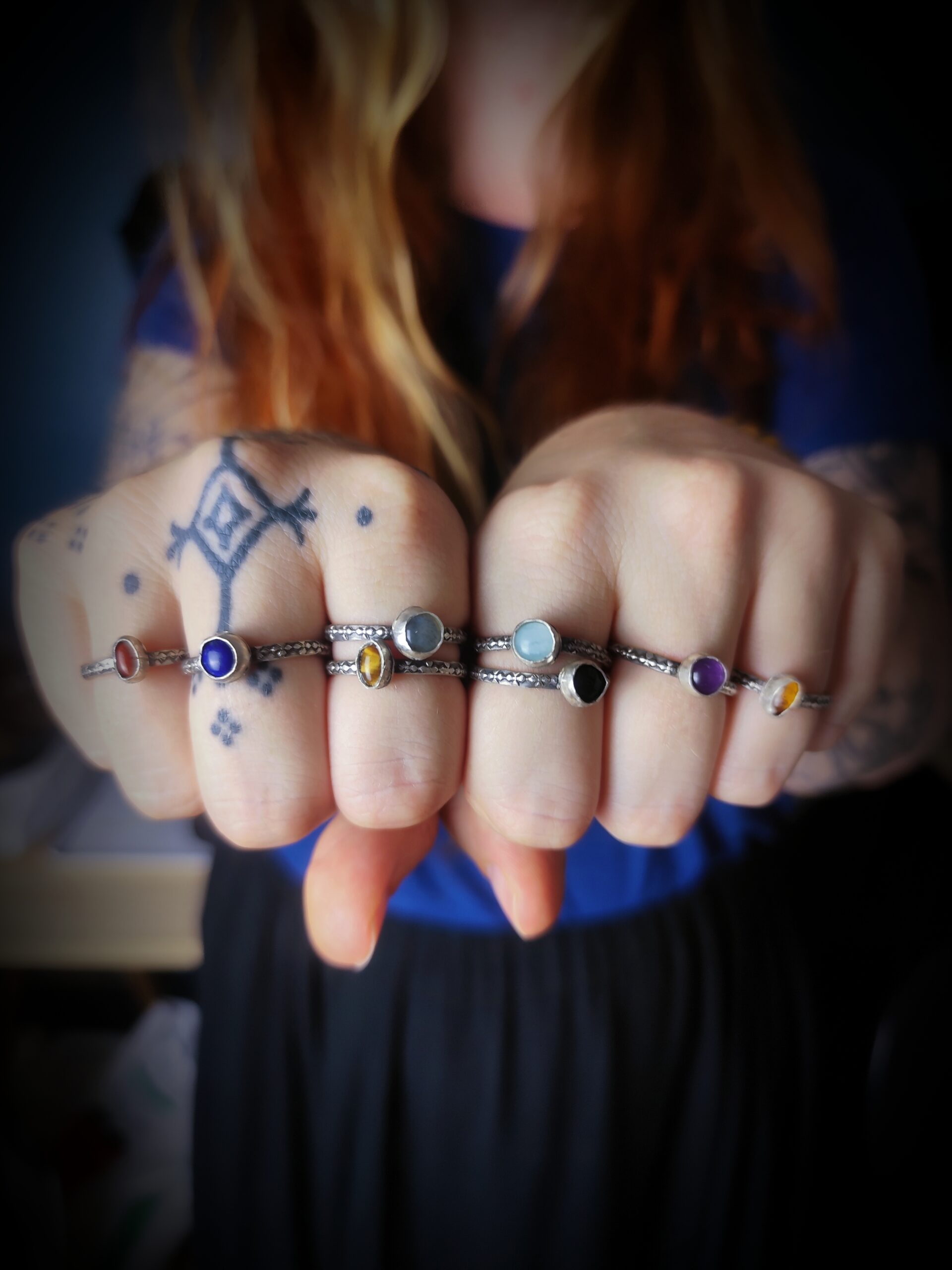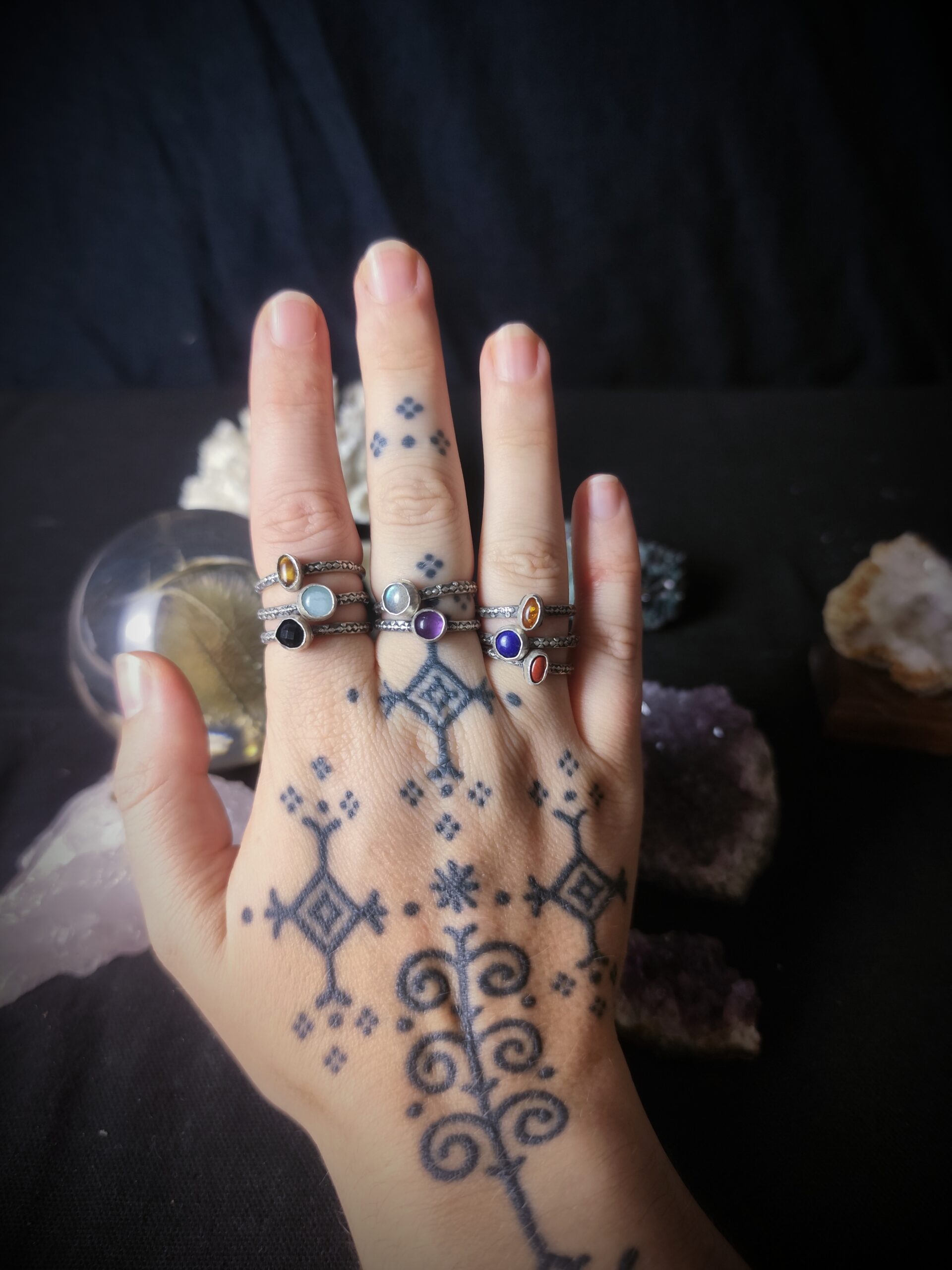 Ces bagues portent les marques du vrai : une trace d’outil, une courbe irrégulière, un sertissage légèrement de travers… Autant de petites empreintes qui témoignent de leur création à la main, avec cœur et patience. Autrefois, j’aurais vu ces détails comme des défauts ; aujourd’hui, je les considère comme la signature du vivant. Elles sont parfaitement imparfaites, un peu comme moi, et comme toi peut-être ?